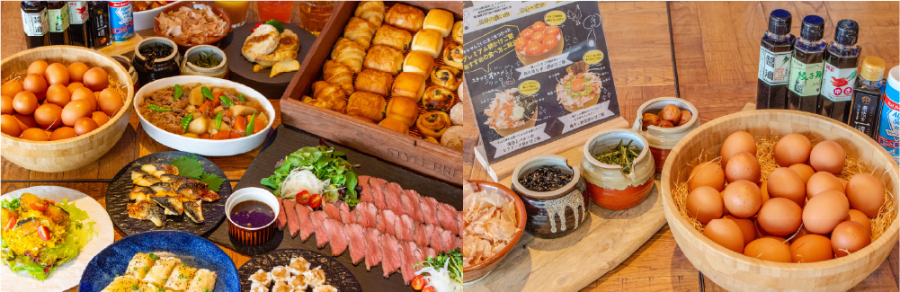新鮮旬野菜のサラダバーやこだわりの卵で始まるモーニングその他10種類以上の総菜をご用意しております。